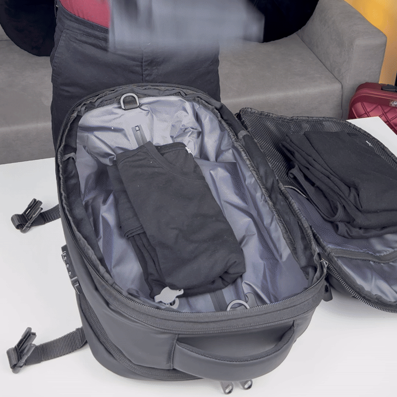 Nie, nie będziesz mieć żadnych problemów z zabraniem naszego plecaka na pokład. Opatentowana technologia próżniowego pakowania jest w pełni zgodna z przepisami TSA oraz wytycznymi linii lotniczych. Działa bez baterii i elementów elektrycznych, dzięki czemu jest bezpieczna w transporcie lotniczym. Dodatkowo kompaktowa i funkcjonalna konstrukcja sprawia, że plecak bez problemu mieści się w schowku nad głową lub pod fotelem. Zawsze jednak warto sprawdzić szczegółowe wymagania danej linii lotniczej.